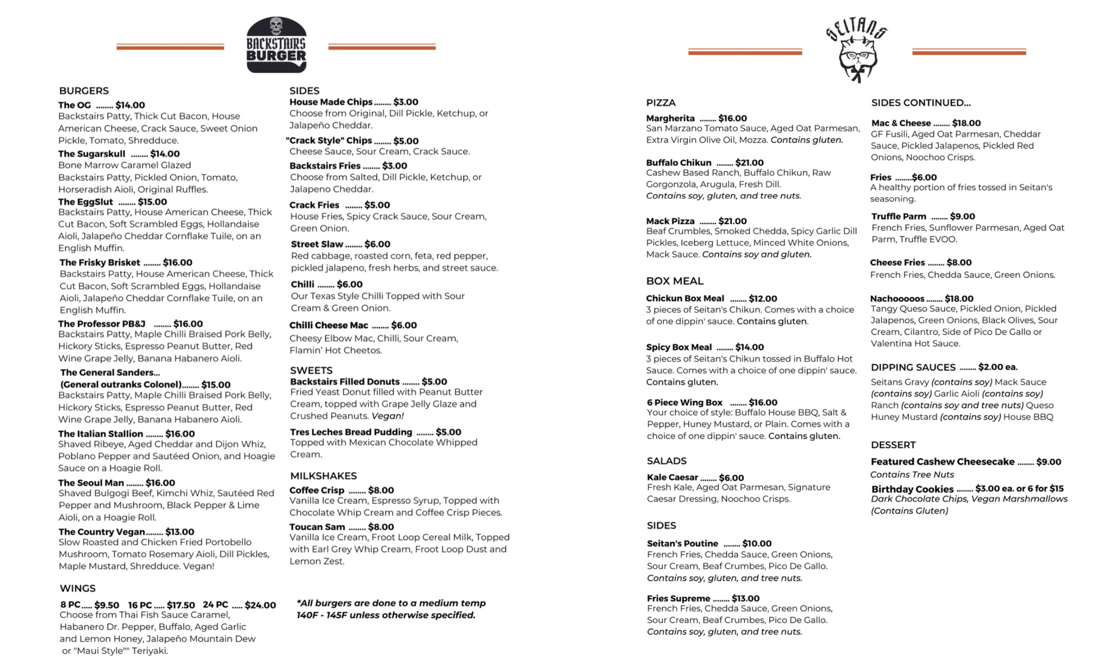 What’s on the menu? (click here for the full menu)